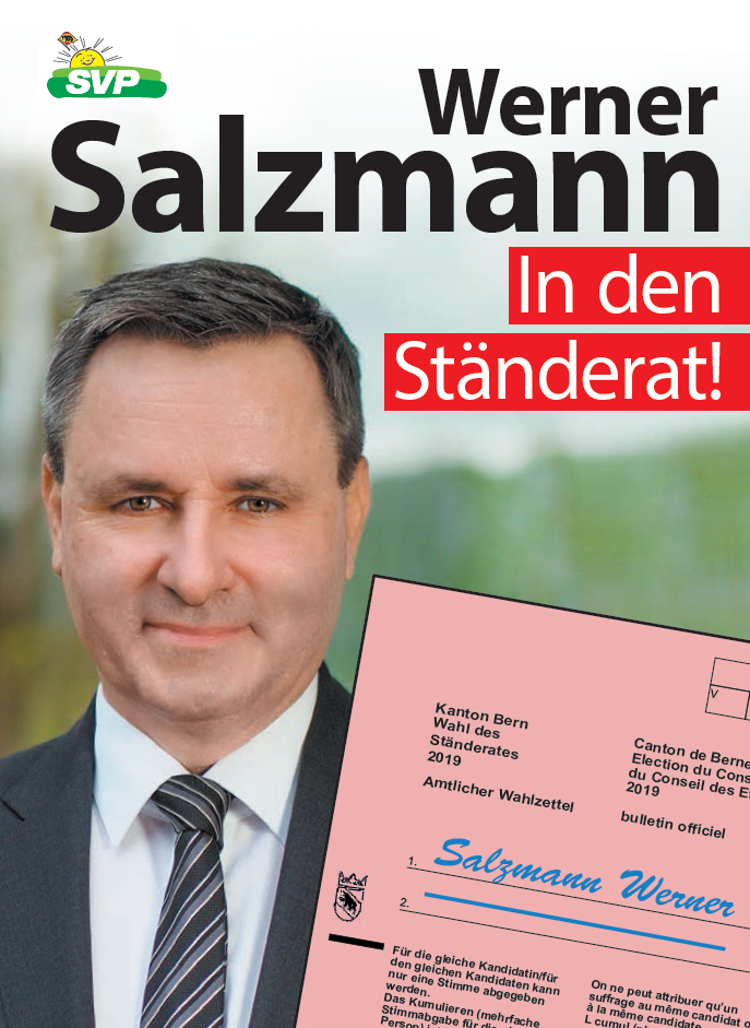 Nationalrat Werner Salzmann (bisher), kandidiert für den Ständerat und den Nationalrat,