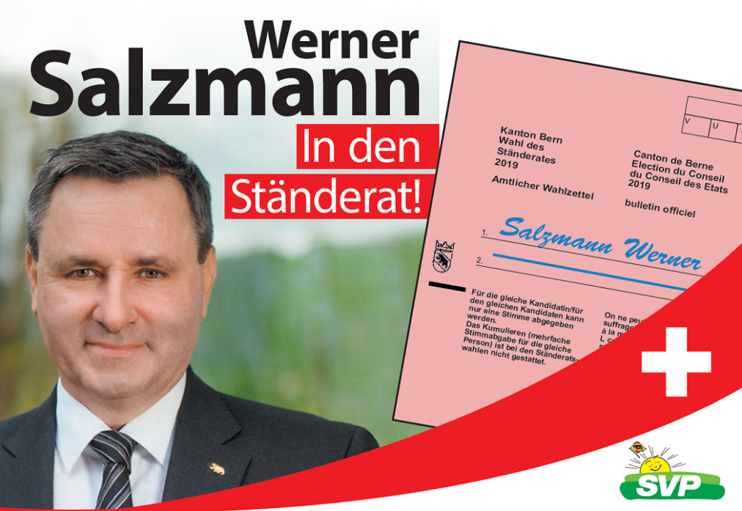 Diese Worte stammen nicht von der SVP, aber dieser Inhalt wird von der SVP verinnerlicht, gelebt und von allen Bürgerinnen und Bürgern gefordert. Wer zustimmen kann und dies unterstützen will, muss SVP wählen. Wer eine Person im Ständerat haben will, die für alle diese Werte einsteht und sie vorlebt, der muss im Kanton Bern WERNER SALZMANN wählen.